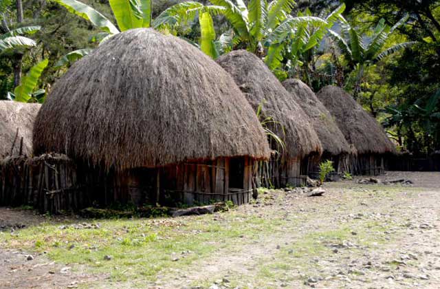 The men’s and women’s huts (locally called the honai) have thick thatched roofs, which keep the huts cool during the day and warm during the cold nights.