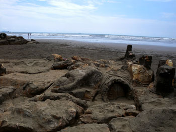 By the beach, there is a Malin Kundang stone and several pieces of equipment from his ship, which are also stones. Based on the story, Malin Kundang was cursed by his mother for his refusal to acknowledging her as his mother after traveling to another region and becoming rich.