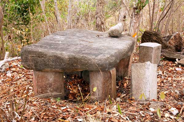 Notez les énormes rochers de pierres et les sièges en pierre plantés devant leurs maisons, un peu comme ceux que l’on voit dans les villages de l’île de Nias au nord de Sumatra.